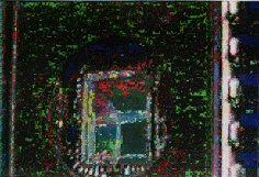Die Speicherzellen dieses EPROMs werden von einem Computer permanent ausgelesen, und die darin gespeicherte Bildinformation auf dem Computermonitor dargestellt.