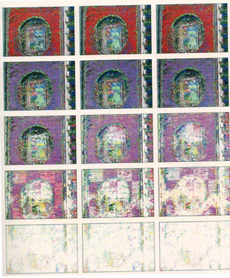 Der im Laufe der Ausstellung fortschreitende Auflösungsprozeß des Bildes wurde durch periodisch auf die Festplatte des Computers gespeicherte Logfiles dokumentiert.