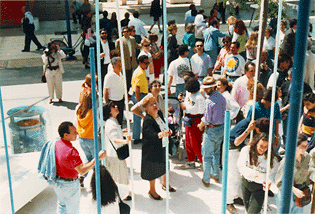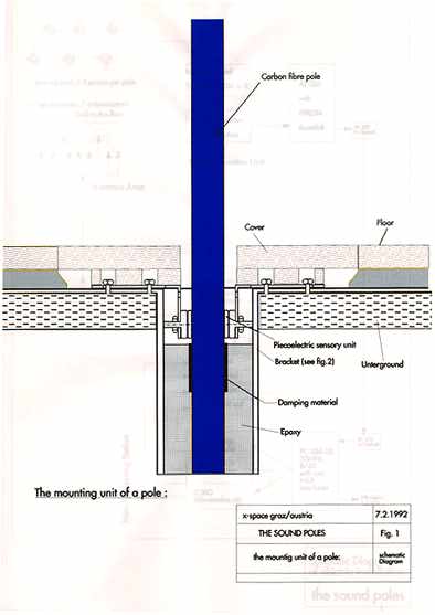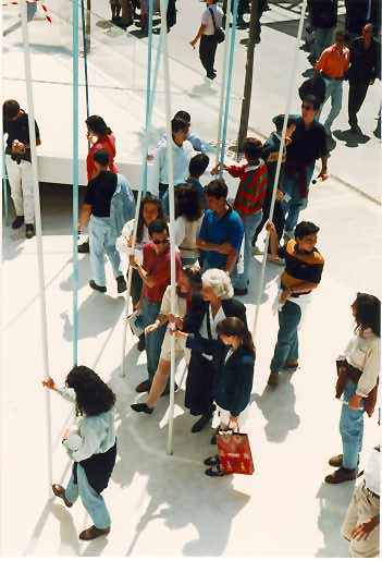 Eine interaktive Klangskulptur für den Österreichpavillon bei der EXPO' 92 in Sevilla. Im Eingangsbereich vor dem Pavillon aufgestellte elastische Stäbe werden von den Besuchern in Bewegung versetzt und steuern so das Klangenvironment der Skulptur.