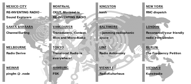 [ English Version ] Während des Events in Wien hat Rupert Huber Bearbeitungen aus Streams der Partner aus Montreal, Vancouver und Tokio – alle, zusammengestellt. Die daraus entstanden Klanggewebe sind Teil der heutigen Radiokunstsendung. |