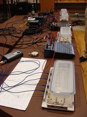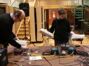 Wechselstrom greifen mit vier Händen direkt in das Klanggeschehen ein und erzeugen eine live prozessierte 5.1-Mischung aus Radiosendungen, Synthesizern, E-Gitarren und Effektgeräten.“
