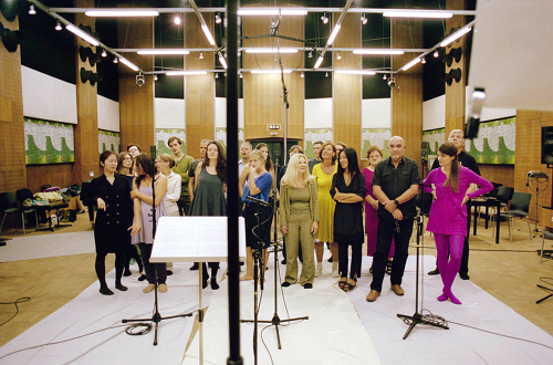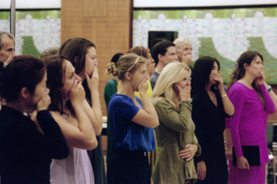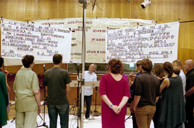 des Chores, die andere Hälfte spricht den Text laut in einem