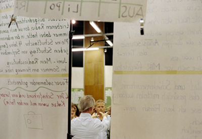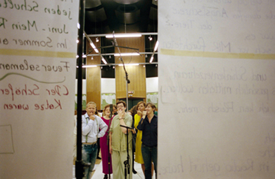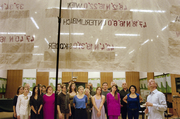 Jurist, Dolmetscherin, Kuratorin, Ingenieur.![]() Im April 2014 wurde der Sprechchor gegründet und im Mai die Probenarbeit wurde aufgenommen. Eingeübt wurden Textpartituren, die Pisek für diesen Zweck verfasst hat und die auf großen Tafeln statt auf individuell zu haltenden Zetteln angebracht waren, freilich mit einigem Freiraum für Entwicklungen innerhalb der Gruppe. So wurden einige Texte in geteilten Chören aufgeführt, als Kanon, als Wechselrede oder als Überlagerung. ![]() Bruno Pisek: "Vakuum. Das Ziel ist klar: Wir formulieren Gedanken, die uns wichtig sind und die in dieser Form sonst nirgends formuliert werden können. Was uns charakterisiert ist klar: Mehrsprachigkeit, sprechkompositorische Vielstimmigkeit, ungewöhnliche Partiturformate, bewegliche Chorfigur / beweglicher Chorkörper." Video 1 Video 2 ![]() Fragestellungen: