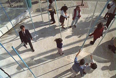 Die Idee: die Klangskulptur wird als Instrument eingesetzt, um damit ein ganzes Konzert zu bestreiten. Zusätzlich ist sie mit einer Computeranlage und mit einem Telefon-Modem ausgestattet. Das macht es möglich, den Sound der "Klangstäbe" über das Telefonnetz weltweit live zu übertragen. Der Konzertablauf: die beiden Grazer Medien-Musiker Josef Klammer und Seppo Gründler versetzen die Skulptur in Bewegung und lösen damit Schwingungen aus, die von Drucksensoren erfaßt werden. An einen Computer werden die Schwingungen weitergegeben, der sie auswertet. Das Resultat wird in weiterer Folge zur Erzeugung, bzw. Steuerung von Klangbildern verwendet. Digital gespeicherte, computergenerierte Klänge bilden also, das akustische Ausgangsmaterial. Die Klangübertragung funktioniert folgendermaßen: mittels Computeranalge und Telefon-Modem werden Klang-Steuer-Daten von Sevilla nach Graz übermittelt. In Graz werden diese Daten erneut in Klänge umgewandelt und dann zeitgleich mit dem Geschehen in Sevilla als Konzert aufgeführt. Während Klammer und Gründler ihre Instrumente und Klangstäbe spielen, wandern Klang-Steuer-Daten nach Graz, wo aus ihnen die Klänge generiert werden. Dieser mit hohem technischen Aufwand geschaffene und übertragene Klang ist - so die Künstler - in seinem Wesen niemals bestimmbar. Denn das Klangmaterial durchläuft verschiedene Formen der Codierung und wird von jedem der verwendeten Übertragungsmedien spezifisch verändert. Übrigens: die Skulptur "die klangstäbe" von Gerfried Stocker und Horst Hörtner zählt zu den vom Publikum favorisierten "Rennern" der EXPO'92: sie ist ständig umlagert. Gerfried Stocker: "die Leute reißen sich darum, die Klangstäbe auszuprobieren, mit der Skulptur akustisch in Interaktion zu treten!" |