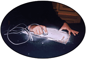 My radio play "The Thinking Ross Did" consists of me rubbing a hand-held calculator against some very abrasive sandpaper non-stop for 35 minutes. Two contact-mics mounted on the calculator are used to amplify the resulting white noise of the grinding.