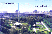 | Das WORLD-WIDE-WEB als GLOBALES MUSIKINSTRUMENT: Netzinhärente Mechanismen im Internet werden genutzt, um komplexe musikalische Prozesse in Bewegung zu setzen. sha + burkhardt gelingt es, diese Ereignisse sinnlich erfahrbar zu machen. Musikalisches Ausgangsmaterial der Klanginstallation "summer" - ein begehbares Rauminterface - sind akustische Informationen aus dem nähreren Umfeld. Diese Klänge aus dem Außenraum werden via World-Wide-Web in das Rauminnere des Theseus-Tempel übertragen und dort "summiert", d.h. räumlich projiziert; gleichzeitig werden sie mit der Akustik im Inneren vor Ort gemischt und sodann wiederum in den öffentlichen realen bzw. den elektronischen Raum gesandt. Ein Feed-back-System entsteht, in dem akustische Morphologien eines urbanen Zentrums (der Volksgarten mit seinem Umfeld Heldenplatz, Ringstraße, Rathausplatz etc.) und typische Gegebenheiten "virtueller Räume" (z.B. unvorhersehbare Zeitverzögerungen durch plötzliche Datenstaus) aufeinandertreffen-und einwirken.