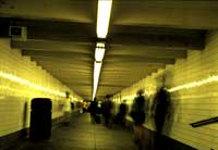 bestimmung new york ist ein Zyklus von "voice sculptures". gal bat fünfzehn Menschen unterschiedlicher Herkunft ein und den selben Text in ihrer Muttersprache zu sprechen. Die Aufnahmen bearbeitete er schließlich mittels digitalem Sampling und diverser Audiosoftware. Dabei stellte der Künstler nicht den Inhalt des Textes, sondern den individuellen Sprachrhythmus und die individuelle Sprachmelodie ins Zentrum seiner Arbeit. Befreit von semantischen und funktionalen Bezügen entwickelt gal aus jeder Stimme ein kurzes musikalisches Portrait und bietet somit eine rein klangliche Wahrnehmung von Sprache an. "68th Street" basiert auf einer Aufnahme, die gal im Frühjahr 1998 gemacht hat: "Damals habe ich versucht, die unvergleichliche Atmosphäre einer New Yorker U-Bahnstation während der Rush Hour einzufangen - im speziellen diese hohen Töne, die immer dann zu hören sind, wenn jemand sein Ticket durch den Ticketautomaten schiebt und die gleich darauffolgenden Geräusche der nachfedernden Drehbalken." "68th Street" beginnt fragmentarisch. Nach und nach wird eine etwa fünfminütige Sequenz aus der ehemaligen Originalaufnahme erreicht, die schließlich voll entfaltet - den Mittelteil des Stückes markiert. Danach schwillt die Komposition wieder ab. Am Ende ist der Anfang. "5 vor 12" ![]() PLAY Dauer: 7'07