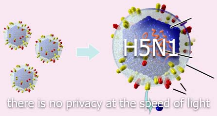 Wann immer sie das Sound-Logo “H5N1: there is no privacy at the speed of light…” hören markiert dieser Sound ein Update des H5N1-Virus auf seiner Mutation, hin zu einem Wesen das unsere Privatsphäre stört und unser Leben bedroht. Die Radio-Miniaturen von Nerve Theory werden während des Jahres 2006 Woche für Woche unvermutet im Kunstradio auftauchen.