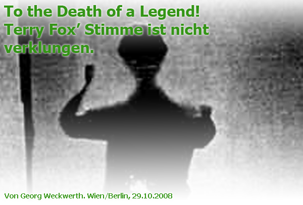 Ich hatte das Glück mit diesem Besten, beginnend im Jahr 1996, dreimal zusammenarbeiten zu dürfen. Ein viertes, bereits begonnenes Projekt, bleibt durch Terry Fox’ Tod nun bedauerlicher Weise unvollendet. Es hätte den Künstler und Menschen Terry Fox in besonderer und sehr persönlicher Weise filmisch, in der Regie der österreichischen Filmemacherin Sabine Groschup würdigen sollen.