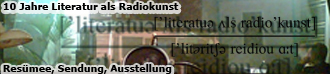 A COPY OF THIS PROGRAM CAN BE ORDERED FROM THE "ORF TONBANDDIENST"Literatur als Radiokunst ist eine Präsentationsform von Literatur im Radio abseits der traditionellen Genres wie „Lesung“ und „Hörspiel“. In der seit 10 Jahren im Ö1 Kunstradio gespielten Reihe werden den Autorinnen und Autoren die Produktionsmittel überlassen, das heißt die Gestaltung der Textpräsentation unterliegt nicht dem Konzept eines Regisseurs, sondern geschieht nach dem Willen der Autorinnen und Autoren.
