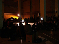 übersetzt wurde.![]() ![]() ![]() Das Hochregallager in der ehemaligen Tabakfabrik, wo die Ars Electronica 2010 stattfand, ist ein immens großer Raum, wo einst in gebäudehohen Regalen die Zigarettenbestände gelagert wurden – derzeit ist die Halle leer. Die akustischen Eigenschaften dieses einzigartigen Raumes, werden im Rahmen des „Sound Space“ genutzt, denn die Ausmaße, sowie die glatten Oberflächen der Wände, erzeugen einen Nachhall von bis zu zwölf Sekunden. Es ist also für das Publikum eine einzigartige Gelegenheit, diesen akustischen Effekt, der bei Musikproduktionen gerne elektronisch hinzugefügt wird, in einem natürlichen, architektonischen Raum zu erleben. Um dieses Sound Environment mit Klängen zu füllen, hat der Musiker und Komponist Rupert Huber einige Künstler und Künstlerinnen eingeladen hier Konzerte zu spielen. Gemeinsam ist Ihnen eine Sensibilität für räumliches Hören bzw für die akustischen Eigenschaften von Räumen. ![]() ![]() ![]() An Orten, die für die Besucher der Tabakfabrik nicht erreichbar sind und ebenfalls akustisch interessante Effekte bieten, wurden Mikrophone und Lautsprecher installiert, etwa an einem unterirdischen Wasserbecken oder im Schornstein der ehemaligen Fabrik. Auch diese sind in der folgenden Raum-Radio-Performance zu hören, gemeinsam mit instrumentalen und elektronischen Impulsen von Rupert Huber, Franz Hautzinger und Marold Langer-Philippsen. In Rupert Hubers Worten: “Hall ist einer der am häufigsten verwendeten Klangeffekte beim Aufnehmen, Mischen und Abspielen von Sounds und Musik. Da iPods, CD-Player oder Radios über keinen akustischen Raum verfügen, ist es elektronischer Hall, der einen räumlich Klangeindruck vermitteln soll. Das Hochregallager in der Alten Tabakfabrik In Linz hat die einzigartige Eigenschaft eines natürlichen, durch die architektonischen Gegebenheiten bedingten, Nachhalls von bis zu zwölf Sekunden. Außer großen Kirchen gibt es kaum gebaute Räume, die diese Qualität haben. Der auffällig lange Nachhall des Hochregallagers in der alten Tabakfabrik in Linz ist auch eine Hervorhebung des Verklingens, eine Verstärkung des Verendens eines Klanges. Wie die Jünglinge in Stockhausens "Gesang der Jünglinge im Feuerofen" Gott singend preisen, während sie verbrennen, sind die Klänge der Komposition Rupert Hubers dazu auserkoren, ihr Verklingen prominent zu machen. Live-Wassertropfen aus einem Keller, die Geräusche im Schornstein in Echtzeit in den Hallraum übertragen, Aufnahmen von Klängen der Konzerte der vergangenen Tage, Klavier und elektronische Trompete sind klangliche Impulse, die ihr eigenes Verklingen/Sterben auslösen. Der Übergang vom Leben zum Tod, der Moment des Verklingens, der letzte Hauch der Realität ist der Moment, den "la petite mort des sons" im Raum und für Radio beschreibt.“