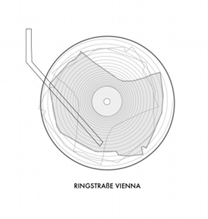 Mit der gleichen Methode und einem leicht adaptierten Nadel-Gerät ist Douglas Moffat heuer die Stadt Wien abgegangen. Hier hat sich die fast kreisrunde Form der Ringstraße als graphische Vorgabe für die virtuelle Schallplatte angeboten, erzählt Moffat.
