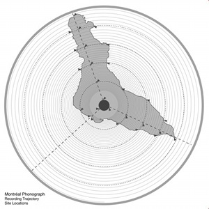 Die längliche Kontur der Stadt Montreal hat Moffat in einen Kreis eingezeichnet und sodann eine von Außen in die Kreismitte gehende Spirale gemacht. Diesem Weg ist er bei der Aufnahme gefolgt.