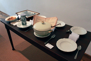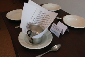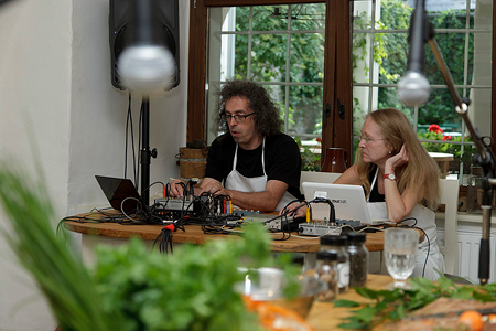 des zehntägigen Events. Das ehemalige Gasthaus „Zur blauen Traube“ mitsamt Gaststube, Küche, Saal, Keller und Garten fungierte 10 Tage lang als Ort künstlerischer Interventionen: Ausstellen, Klänge generieren, Kochen, Essen, Reden, Senden … in all diesen Aktionen stehen die verschiedensten Formen des „Erzählens“, des Produzierens von potenziell mythologischer Wirklichkeit DIESER Stadt und DIESES Ortes im Mittelpunkt. Mit Installationen, Performances, kulinarischen und sozialen Inszenierungen wurde der Gasthof Schritt für Schritt geöffnet und wurde betretbar und erlebbar gemacht, bis schließlich dessen „Social Noise“ die Mauern zum öffentlichen Stadtraum durchdrang. Dass Eferdingerinnen und Eferdinger auch aktiv zu diesem „Social Wirtshaus Web“ beitragen konnten, in dem sie ihre eigenen Teller voller Zutaten zur öffentlichen Ausstellung brachten – und als Gegenleistung dafür eine Urkunde bekamen, die diese zum Kunstwerk erklärt – unterstreicht den verbindenden und verbindlichen Charakter dieses Projekts: die Übertragung ehemaliger Funktionen dieses Ortes in die heutige soziale Wirklichkeit. Mitwirkende: alien productions (Martin Breindl, Norbert Math, Andrea Sodomka), Cordula Hanisch, Christian Scheib Produktionsleitung: Norbert Schweizer Espressomaschinen und Kaffeemühlen: Michael Reiter Ort: ConSenso Stadtplatz im ehemaligen Gasthof zur blauen Traube, Stadtplatz 29, 4070 Eferding http://www.consenso.at/ Dank an alle Eferdingerinnen und Eferdinger, die freundlicherweise Leihgaben zur Verfügung gestellt oder Interviews gegeben haben. Dank an Beans Espresso und Kaffeespezialitäten Wien http://beans.at Single Mastering und Schnitt: Dieter Kovacic aka. Dieb13 Die Eferdinger GeschichtenerzählerInnen / InterviewpartnerInnen: Alfred Jungraithmayr, Toni Tossmann, Heli König, Mitzi Schachinger, Gerli Brummeier, Franz Huemer, Anton und Ulrike Peschka, Adi Mielacher, Franz Huemer, Ernst Bauer, Oskar und Marianne Kreuzmayr, Erna Sulzbacher, Christl Hellmayr, Hermann Jungraithmayr, Adolf Hager, Rosa Parzer Die Eferdinger LeihgeberInnen: Paula Langmayr, Max Neundlinger, Herta Jungraithmeier, Marianne Gottsbachner, Ingrid Neundlinger, Ursula Habelt, Emmi Nagl-Samhaber, Anton und Ulrike Peschka, Regine Jungwirth, Johann Raab, Eva Derndorfer, Elisabeth Vogl, Die Rabtaldirndln, Herta Gruber, Verena Wagner-Taferner, Fritz Cotely, Elfriede Mathä, Gisela Tumpach, Poldi Scheib, Karl Hemmelmayr, Karin Peschka, Franz Huemer, Fridolin Dallinger, Zuzana Deakova Die 4 Stufen des Projektes: Erzählen und Vermahlen: Eferdingerinnen und Eferdinger brachten ihre eigenen Teller voller Zutaten zur öffentlichen Ausstellung. In der Installation "The Grind" wurde rhythmisch Kaffee gemahlen. Die Musicbox spielte auf Knopfdruck Geschichten und Erinnerungen von EferdingerInnen zum Wirtshaus und Musik aus der Zeit als das Wirtshaus noch in Betrieb war. ![]() Fotos: Martin Breindl Lagern und Vergären: Am Freitag, den 14. Juni 2013, wurde im Keller des Gasthauses virtueller Most vergoren. ![]() Foto: Martin Breindl Kochen und Essen: Am Samstag, den 15. Juni wurde von 14 bis 20 Uhr stündlich eine Rindsuppe mit selbstgemachten Backerbsen in der Küche des Gasthauses gekocht. Die dabei entstehenden Geräusche wurden elektronisch transformiert und in das Live-Geschehen sowie in die Wirtshausstube übertragen. Die Besucher/innen wurden eingeladen in der Küche der Kochperformance beizuwohnen und daraufhin in der Wirtshausstube die Suppe zu verzehren. ![]() Cordula Hanisch und Martin Breindl beim Kochen. Bild: Julia Vogt, Copyright: Festival der Regionen. Andrea Sodomka und Norbert Math machen Live Sound. Bild: Julia Vogt, Copyright: Festival der Regionen. http://www.flickr.com/photos/festivalderregionen/sets/72157634173912034 Reden und Trinken: Der gesellschaftliche Höhepunkt des Projektes fand am Sonntag, den 16. Juni, im Ballsaal statt. Nach der Verleihung der Urkunden an die SpenderInnen von Leihgaben für die Ausstellung im Galerieraum teilten wir eine Tageskarte an die Gäste aus, durch welche intensive Gespräche in Gang gesetzt wurden. Die geladenen Gäste wurden so ausgesucht, dass an jedem Tisch eine Mischung aus Einheimischen, "Zuagrasten" und Weggezogenen zusammen kam. Serviert wurden erst Wasser und Kaffee, Mehlspeisen, und im Lauf des Abends Most, Brezen, Keli und Schartner Bombe. ![]() Fotos: Martin Breindl Social Wirtshaus Web Blog http://alien.mur.at/sww Festival der Regionen http://fdr.at/new/projekte/ |