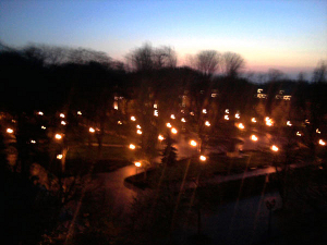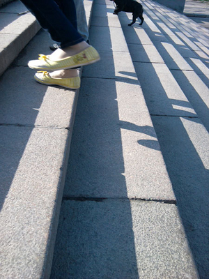 ![]() Die österreichische Musikerin und Komponistin Elisabeth Schimana hat sich vom 22. bis 28. April 2012 zu unterschiedlichen Tageszeiten auf die Potemkinsche Treppe gesetzt, die wegen Sergei Eisensteins Film "Panzerkreuzer Potemkin" wohl berühmtesten Treppe der Welt, das Meer beobachtet, sowie Streifzüge durch die Straßen von Odessa unternommen. Die dabei entstandenen Aufnahmen dienen als Grundlage und Ausgangsmaterial für ihren Radiomix, den sie live im Kunstradio macht. ![]() ![]() „Und jeden Tag sitzen, auf DER Stiege – immer Schritte, immer Füße. Und jede Nacht aus dem Hotelzimmerfenster schauen -Stimmen, Vögel, Musiken Und manchmal durch die Straßen schlendern oder am Meer entlang wandern.“ ![]() Ein akustisches Tagebuch Und jeden Tag sitzen, auf DER Stiege - immer Schritte, immer Füße. Und jede Nacht aus dem Hotelzimmerfenster schaun - Stimmen, Vögel, Musiken Und manchmal durch die Straßen schlendern oder am Meer entlang wandern. DER = Potemkinsche Treppe in Odessa Alle Klangmaterialien aufgenommen von Elisabeth Schimana vom 22 04 2012 bis 28 04 2012 Technik: Fritz Trondl Sprecherin: Anna Soucek Idee Die zu Grunde liegende Idee war, sich an 7 Tagen auf die Potemkinsche Treppe in Odessa zu setzen und Klang aufzunehmen. Umsetzung - Materialgenerierung Material I Stiege Bei meiner ersten Aufnahme am 22. 4. 2012 wurde mir klar, dass das Material im Wesentlichen von den Klängen der am Ende der Treppe vorbeigehenden stark befahrenen Straße bestimmt sein wird. Ich habe mich daher entschlossen, nicht nur zu unterschiedlichen Zeiten, sondern auch an unterschiedlichen Orten auf der Treppe mein Aufnahmegerät zu platzieren. Material II Hotelfenster Das Zimmer im Hotel in dem ich untergebracht war schaute auf den Beginn der Fußgängerzone von Odessa und einen Park mit Pavillon. Ich entschied mich auch hier vom Fenster aus fast nächtlich aufzunehmen. Material III Stadt Ich unternahm Streifzüge durch die Stadt, zu Fuß und mit der Straßenbahn. Ich setzte mich in einen Klosterhof, passierte eine Vogelfrau mit Kücken in Schachteln am Straßenrand, fuhr mit der Straßenbahn und schlenderte durch Einkaufspassagen. Material IV Meer und Hafen Ich unternahm Wanderungen am Meer entlang. Dabei kommt man an einen Punkt an dem man den Frachthafen von Odessa von oben sieht und hört. Eine ganz andere Stelle am Meer fand ich gegenüber der Potemkinschen Treppe, an welcher Segelboote und Personenschiffe anlegen. Materialbehandlung Alle Materialien wurden nach Datum, und die Aufnahmen auf der Treppe und aus dem Hotelzimmerfenster auch nach Uhrzeit, benannt. Material muss abliegen, wie ein gutes Steak, bei mir meistens etwa ein Jahr. Alle Materialien wurden auf Brauchbarkeit gehört und grob geschnitten. Dabei ergab sich klanglich klar die Schritte auf der Treppe mittels Filtern herauszuarbeiten. Alle anderen Materialien sind kaum bearbeitet, sozusagen nur leicht geputzt und fein geschnitten. Es ist mir sehr wichtig bei field recordings das Material so zu belassen wie es das Mikrofon gehört hat. Ich bin an komplizierten elektroakustischen Materialbearbeitungen nicht interessiert. Struktur Diese ergab sich klar aus der Idee und dem Material. * Samstag 21. April 2012 Auf der Treppe sitzen 9h durch die Straßen schlendern Sonntag 22. April 2012 Aus dem Fenster hören 17h Montag 23. April 2012 Auf der Treppe sitzen 21h durch die Straßen schlendern Dienstag 24. April 2012 Auf der Treppe sitzen 13h durch die Straßen schlendern – auf das Meer hören Mittwoch 25., April 2012 Auf der Treppe sitzen 18h aus dem Fenster hören 5h durch die Straßen schlendern – den Hafen hören – auf das Meer hören Donnerstag 26. April 2012 Auf der Treppe sitzen 9h durch die Straßen schlendern – den Hafen hören Freitag 27. April 2012 Unter der Treppe sitzen 17h aus dem Fenster hören 10h durch die Straßen schlendern – auf das Meer hören * Dieser Text wird beim live Mix von einer Sprecherin gelesen Radio live Mix Warum also kein fertiges Stück produzieren, ins Studio gehen und während der Sendung mischen? 1. Weil es spannend ist und sich aus dieser Spannung eine für diesen Sendemoment emotional richtige Empfindlichkeit ergibt. 2. Weil ich diesen unbestimmbaren Hörraum und das nicht zu fassende Publikum für das ich spiele liebe. |