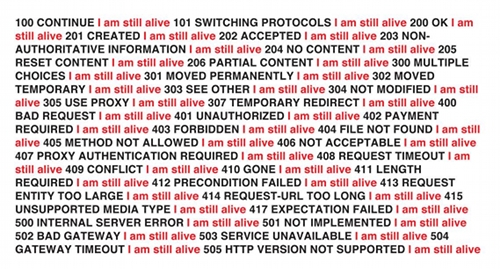 Als Künstler und als Ausstellungskurator beschäftigt sich Darko Fritz mit Methoden der Archivierung, mit der Übertragung von Informationen vom einen Medium zum nächsten, mit den Transformationen die bei dieser Übertragung geschehen, sowie mit der Reinheit des Signals. Er überträgt digitale Daten in analoge Daten oder etwa auch in biologische Materie. Seit 2001 schon arbeitet er an dem Zyklus Internet Error Messages. Zu diesem Zyklus hat er auch das Radiostück „I_am_still_alive.HTML“ produziert, das sich aus einem Katalog an HTML-Fehlermeldungen speist. Diese Fehlermeldungen informieren den User, also einen Menschen, über den Dialog zwischen zwei Servern über Kommunikationsprobleme. Die Zahlen sind Fehler-Codes, also die Information die für Computer ausreichen würde, und die Worte sind kurze Erklärungen für die Menschen. Der Titel „I am still alive“ spielt an auf eine Arbeit des Künstlers On Kawara aus den 1970er Jahren, der an Galeristen und Museumsdirektorinnen jeweils mehrere Telegramme mit gleichem Wortlaut schickte, also die Information als ihre Materialisierung verwendete.
