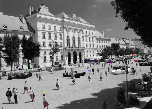 Am 08. August 2015 erkundigen zwei Beobachter – die Schauspieler Roberta Cortese und Christoph Theußl – die Umgebung im Hof des Wiener MuseumsQuartiers. Sie spazieren und beobachten: Menschen, Bewegungen, Bilder, Atmosphären. Sie beschreiben was sie sehen, sie übertreiben, fantasieren, sie werden wieder nüchtern, sie schweigen. All ihre Eindrücke sprechen sie in Funkmikrofone. Ihre Signale werden am Mischpult empfangen und von der Komponistin Laura Mello, die im August als Gast von TONSPUR eine Artist-in-Residence im quartier21 des MuseumsQuartier Wien inne hat, zu einem «lebendigen Audioguide» aus vorproduziertem und live bearbeitetem Sound gemischt. Das Zusammenspiel dieser drei Akteure wird live auf Radio Orange 94.0 übertragen. Passanten und Passantinnen vor Ort, sowie Zuhörer und Zuhörerinnen anderswo können die Aktion über normale UKW-Radios oder mit einer Radio-App auf ihren Smartphones hören. Gäste des Hofs im MuseumsQuartier Wien werden in die Beobachtungen integriert, und beeinflussen so den Verlauf des Living Radios.