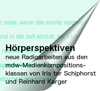 Die Studierenden der beiden Medienkompositionsklassen an der mdw haben im sich im Studienjahr 2017/18 analytisch und kreativ mit dem Thema "Radio" beschäftigt - in den Seminaren wurde die Geschichte des Hörspiels und verwandter Formen akustischer Kunst behandelt und diskutiert und im Einzelunterricht die neu entstehenden akustischen Kompositionen begleitet.