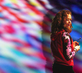 Gesang, Flöte, Komposition, Elektronik Nach einer Ausbildung in klassischer Musik, die auch "zeitgenössische Strömungen" mit einschloss, hat sich die Musikerin Franziska Baumann als Vokalistin, Improvisatorin und Spezialistin für szenische Raumklanginstallationen sowie mit Klangkompositionen und Theatermusik international einen Namen gemacht. Dies in einem Umfeld, das mit seinem Spektrum die immense Vielfalt von Perspektiven für kreative MusikerInnen von heute widerspiegelt: von der rein akustischen Musik bis zur Sensor- und Digitaltechnik, zwischen den beiden Polen Komposition und Improvisation, zwischen Raumklangprojekten und konzertanten Bühnensituationen. zB. Gletscherklangstrom, eine Raumkomposition für Gletscherklänge, Stimme und interaktive Klangarchitektur (mit Andres Bosshard). Aufführungen:1.-3. Sept. 2000, Montagehalle der Trafostation oberhalb Sylvaplana-CH, 2�me f�te des arts; Alte Wasserstände Marl- D, Nov.2000; Tomaskirche Bern, Januar 2001; Alpentöne-Festival Altdorf-CH, 17.-19. Aug.2001 Als Vokalistin integriert sie In ihren Konzerten unverwechselbare microtonale, timbrale, sprachnahe und perkussive Vokaltechniken. Durch die elektroakustische Bearbeitung der Klänge öffnet sie neue Hörräume und erweitert die Klänge in einen Fluss von Texturen, Rhythmen, Flächen und Gesten. Als "Composer in residence" im Elektronikzentrum STEIM, Amsterdam entwickelt sie zur Zeit ein elektronisch interaktives Instrumentarium: Mittels eines mit dem Mac verbundenen Cyberglove formt und steuert sie sowohl ihre Live stimme als auch vorkomponierte mehrkanalige Klangzonen. Damit eröffnet sie sich die Möglichkeit, mit Händen und Füssen die Stimmklänge zu formen und ein direktes Gefühl für das eigene Nahkörperfeld zu entwickeln, eine notwendige Voraussetzung, um den Klang in Raum und Zeit atmen zu lassen und durch die elektroakustische Umgebung zu führen. Sie hat auf verschiedene Weise ihre Klangsprache entwickelt. Von solo Konzerten, verschiedenen kleinen und grossen Gruppen, über intermediale Projekte (Raumklang, Hörspiel, Theater, bildende Kunst, Tanz) und Aufnahmen mit MusikerInnen wie Andres Bosshard, Fred Frith, Jean Jacques Pedretti, Lucas Niggli, Michel Wintsch, Fritz Hauser, Herv� Provini, Charlotte Hug, Peter Schärli, Martin Schuetz, und anderen. Konzerttourneen führten sie in die USA, Polen, Tschechoslowakei, Italien und Deutschland und Festivals wie "Audio Art" in Krakau, P; Limbo, Plasy CZ; "Wie es Ihr gefällt", Berlin; "Knoten", Bern; Performance Festival, Rom u.a. Franziska Baumann erhielt verschiedene Werk- und Förderungsbeiträge. Vocalist/Performer/Composer, Berne -CH After a training in classical music that included "contemporary" trends, the composer, vocalist and flautist Franziska Baumann has made a name for herself as a performer, improviser and specialist in live electronics, and for her sound installations and theatre music. This spectrum reflects the immensely diverse perspectives of today's creative musicians: from purely acoustic music to sensors and digital technology, between the two poles of composition and improvisation, between spatial sound projects and concert performances. Using electronically processed sound, she develops a form of acoustic scenery in her concerts, which involves space itself as a score and into which she integrates her singing and vocal actions aurally and theatrically. As "composer in residence" in the STEIM "Studio for ElectroInstrumental Music", Amsterdam, she is currently developing an interactive sensorlab based cyberglove to enable her to control articulations of voice, sounds and space real-time via gesture and movement. She has developed her sound language in various ways: from solo concerts, various small and large groups, via projects spanning several media (sound in space, theatre, radio, visual art, dance), to recording with musicians such as Andres Bosshard, Charlotte Hug, Fred Frith, Jean Jacques Pedretti, Michel Wintsch, Fritz Hauser, Lucas Niggli, Martin Schuetz and others. Concert tours have taken her to the USA, Poland, the Czech and Slovak Republics, Italy and Germany, and to festivals such as "Audio Art" in Cracow (P); "Limbo", Plasy (CZ); "Wie es Ihr gef�llt", Berlin; "Knoten", Bern; Performance Festival, Rome etc. Franziska Baumann is the recipient of various grants and scholarships