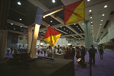 Dieser Roboter "übersetzt" in Echtzeit die in den Computer eingegebenen Nachrichten in das internationale Flaggenalphabet der Seefahrer (Semaphor) - sichtbar für alle Besucher des Convention Centers.
