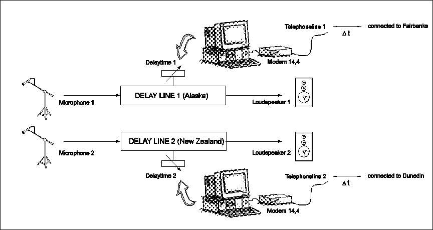Hörbar wird ein Pulsieren des globalen Netzwerkes entlang der Achsen Fairbanks - Innsbruck, Innsbruck - Dunnedin.