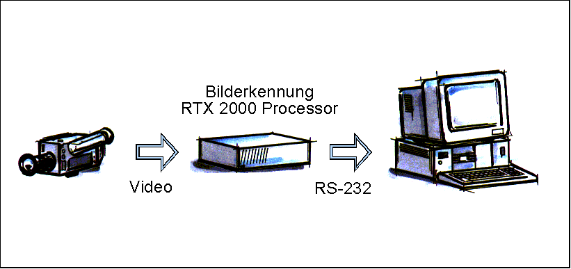 Diese Bilder werden in einen Computer eingespeist, der mitttels "digital motion scanning" die Zeichen erkennt und wiederum als Buchstaben am Bildschirm ausgibt.