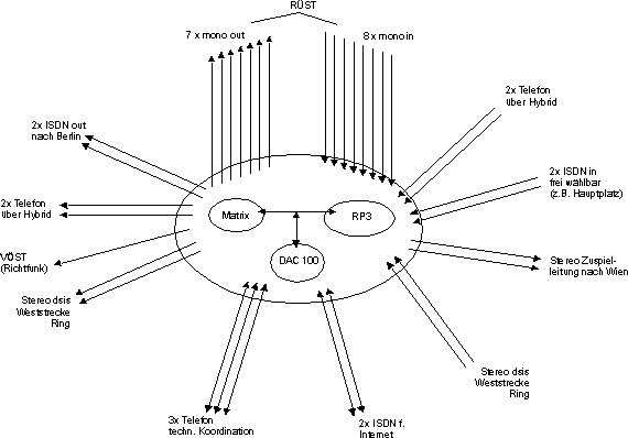 Each station has a bidirectional (fullduplex) connection to Linz via this matrix we can route the signals on demand of the stations