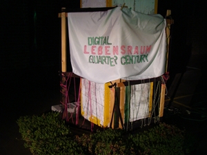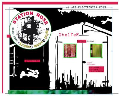 Die Medienkunstgruppe Station Rose (Gary Danner und Elisa Rose), bauen im Zwischenmagazin B der Linzer Tabakfabrik zur Ars Electronica 2013 eine bespielbare Raumsituation mit dem Titel “DQC_ShelTeR“. Sowohl Skulptur, als auch Performanceraum, Biotop und Datenbank, wird die Installation als begrüntes, bespielbares Archiv genützt. Anlässlich seines 25-jährigen Bestehens errichtet ein vernetztes Holzhaus, „um den Überblick über Unmengen von Daten nicht zu verlieren“. Der digitale Datenfluss der audiovisuellen Datenbank steht ästhetisch im Kontrast zur pflanzlichen Vernetzung, vermischt sich mit dieser – im Kunstradio ist eine Live-Radioperformance der Cyberspace-Pioniere Station Rose zu hören. Links: http://www.stationrose.com http://www.aec.at/festival/ |