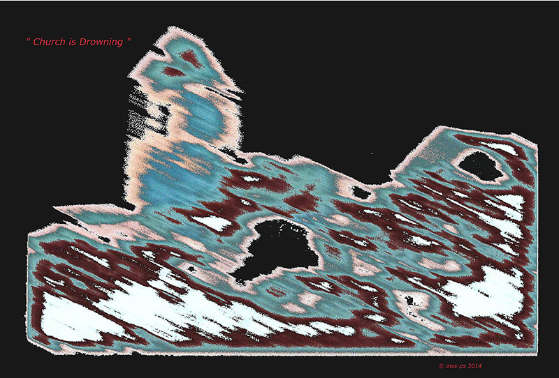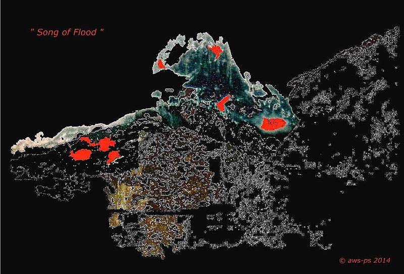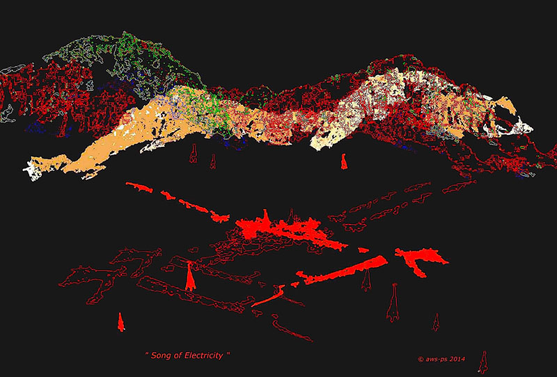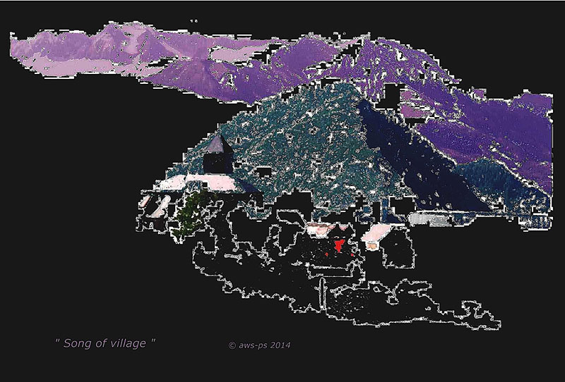 In the Basque country between the Spanish and French borders, the artists recorded the life and voices of mountaineers and animals, as well as the voices of mountains. Voices come and go as floods through the piece, sometimes born from the nature itself, but time-to-time as a result of man’s own desire to catch the power of the mountains by chaining it, forcing it into tubes in order to serve humankind. But mountains have their own powers! The eternal struggle between men and mountains finishes as it started and finally turns into a lullaby of the legend of the Pyrenees... This radioscape piece is realized partly at Cracow Music Academys Electronic Studio, ORF Kunstradio studios in Vienna and in the artists’ home studio "Sirius – Virtual Visions" in Finland. The visual part consists of a series of photos taken and computer-processed by the artists. They perform the imaginary landscapes of the drowned village Lanuza on the Northern border line of Spain.” (Agnieszka Waligorska & Pekka Sirén) The piece is based on the 2006 version “Power of the Mountains”. |