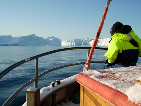 Grönland und an der Barentssee gemacht, in Gletscherspalten,