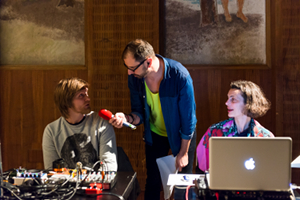 | Das Kunstradio blickt zurück auf die Art’s Birthday Feier 2015, die am 17. Jänner stattgefunden hat. Verbunden via Internet, Streams und Radio haben auch diesmal wieder unzählige Künstlerinnen und Künstler, Kunstvereine, Museen, Galerien und Radios an der „Fete Permanente“ teilgenommen, die 1963 vom französischen Fluxuskünstler Robert Filliou ausgerufen wurde. Lang lebe die Kunst, happy Art’s Birthday! 1.000.052 Jahre ist die Kunst jung, und ein Ende zeichnet sich nicht ab. Am 17. Jänner 2015 feierte das Kunstradio gemeinsam mit Künstlern und KünstlerInnen auch on site mit Publikum im Radiokulturhaus in Wien und on line. Die begeisterten Gäste brachten Geschenke für die Kunst ins RadioKulturhaus mit – ganz ohne Aufforderung und erweiterten das Programm bestehend aus dem Sprechchor unter der Leitung von Bruno Pisek, Elisabeth Schimana und Vasjar Progar, David M Schuh, Tobias Leibetseder und zB (Barbara Kaiser und Tamara Wilhelm). Ätherwellen von Vasja Progar und Elisabeth Schimana ![]() ![]() ![]() Diese hypothetische Substanz, der Äther, ist Namensgeber für die entkörperten Stimmen aus dem Äther, dem Radio, und für Leon Theremins Instrument, dem Äthereophon, oder besser bekannt als Theremin.. Vasja Progar und Elisabeth Schimana spielten während ihrer Performance mit den Wellen des Äthers mit live Elektronik, Radiogeräten und Theremin. Diese Arbeit entstand 2014 während einer Residency am CONA Institute for Contemporary Arts Processing, Ljubljana. Spaziergang von David M Schuh ![]() ![]() ![]() ist eine Klangperformance, die den Arbeitsbereich Tisch verlässt. Das klangerzeugende und klangmanipulierende Equipment befindet sich in und auf einer Weste, die eine mobile Arbeitsweise ermöglicht. Während der Art’s Birthday Performance wurde der generative Audio - Stream LMY vii, der von einer Partitur von LaMonte Young inspiriert war, in Echtzeit über das Fx_Jacket manipuliert. ![]() Eternal Wandler enormous outcome von Tobias Leibetseder ![]() ![]() ![]() Der Alchemiker stellt in seinem Labor das Element EtN her. Er benutzt dazu Radioinfiltratoren für den Radioraum, Baryonenverstärker zur Verstärkung der Materie, Quantenoszillatoren und Ewigkeitsgeneratoren. Aus Zersetzungen und Flüssigkeitsanalysen, köchelnden Laborgefäßen sind Bestandteile des EtN zu destilieren. Viele Methoden großteils noch unerforscht sind dazu notwendig und werden akribisch getestet und der enormen Untersuchung in ewigen Datentabellen zur Verfügung gestellt. ![]() Leibetseder verwendetet für seine performance folgende Instrumentarien: Radiogeräte, Verstärker, Herdplatte, Gefäße, Mikrofone, Piezomikrofone, Lapsteel, Kartonfaltobjekte, Verpackungsmaterial, Laptop, Gitarre und eine Kaffeemaschine. Links: Kunstradio Art’s Birthday 2015 http://www.artsbirthday.net Wishpered art’s History by Robert Filliou RadioKulturhaus Wien |