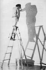 Marioni hung a sheet of brown wrapping paper low on the wall, seated
